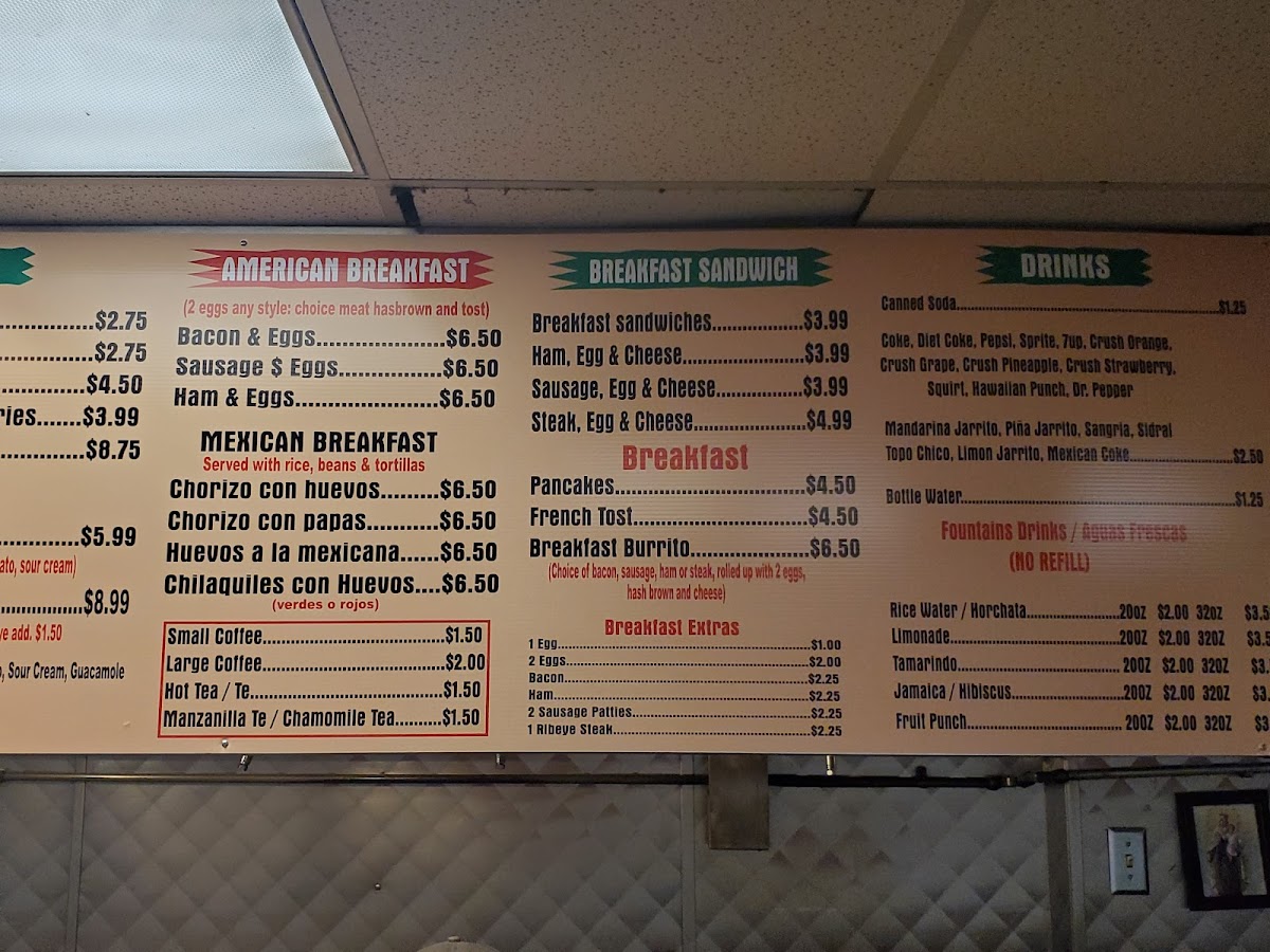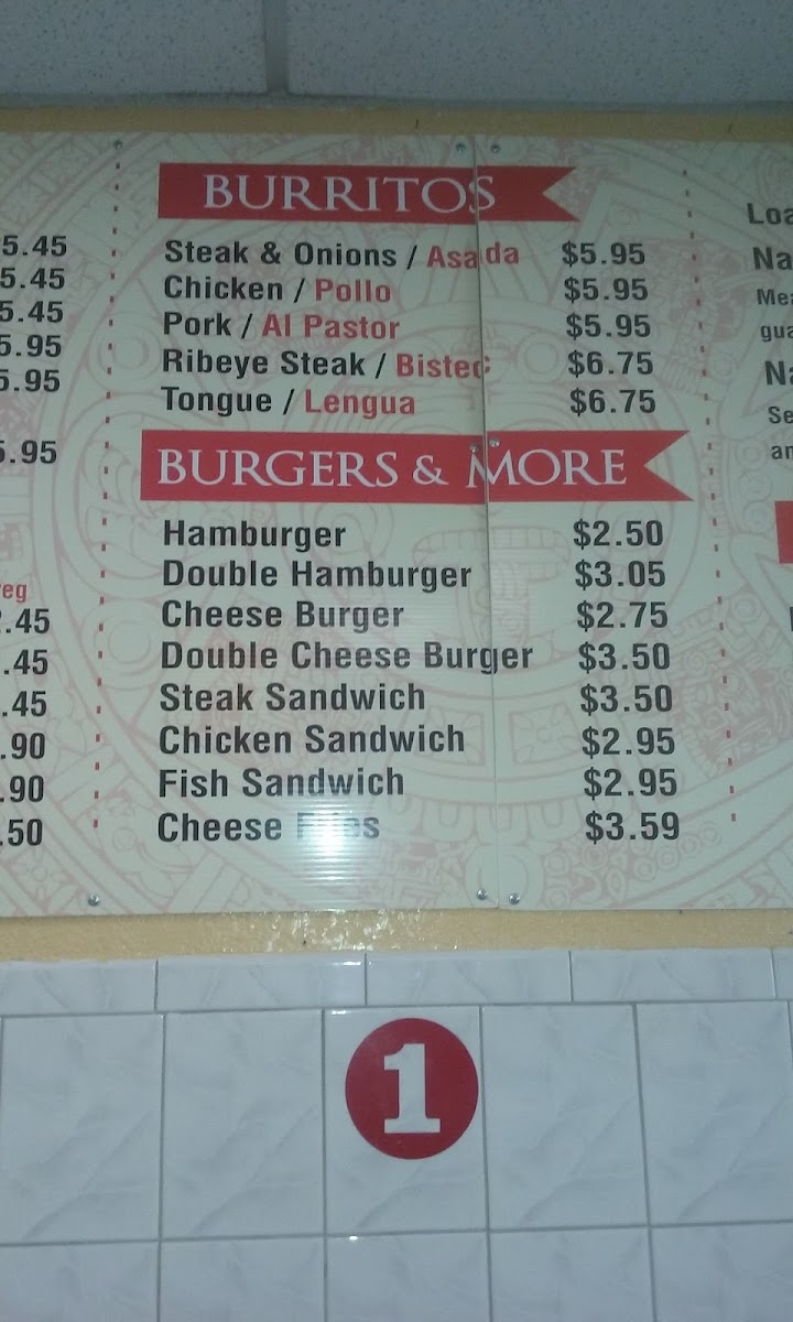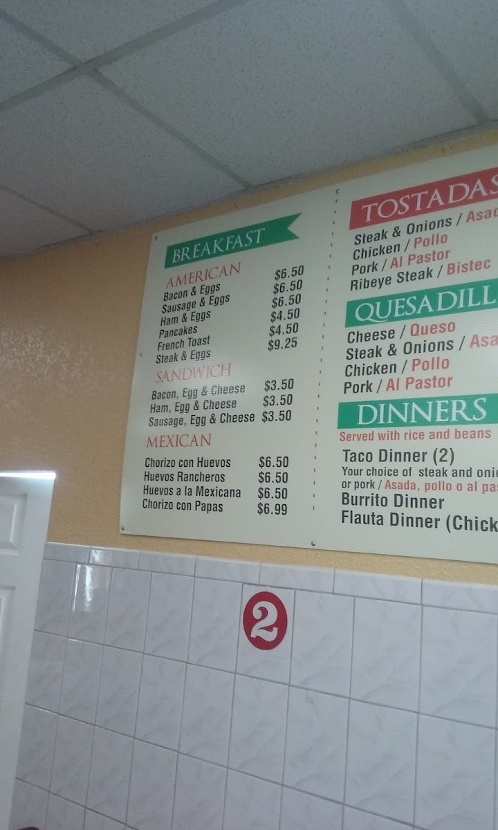 - Tacos: Delight in the Ribeye Taco and Asada Taco, offered at $3.15 and $2.75, respectively.